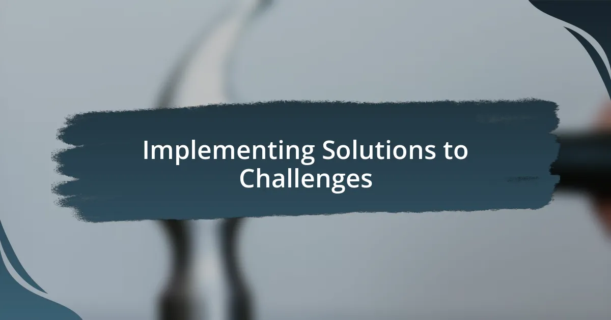 Implementing solutions to challenges requires a strategic mindset and a willingness to adapt. I remember a time when we identified a significant barrier in our customer service workflow. By collaborating with team members across departments and gathering their insights, we developed a new ticketing system that not only streamlined communication but also empowered our support staff. Have you ever experienced the relief that comes from a simple yet effective change?